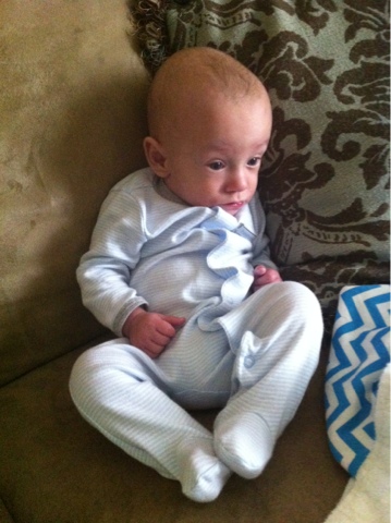 You are such a happy baby! You love everyone and will smile at anyone! You especially love your brother!! You always look for him! You have not officially laughed completely out loud! You have a sort of laugh but its not a full giggle like we are waiting for!